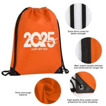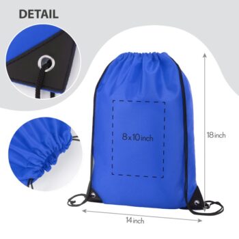 Item # PR 3438 – This 14″ x 18″ drawstring backpack is made from durable 210D polyester with black simulated leather reinforcement trim at the corners for added strength. Reinforced eyelets enhance durability, making it ideal for everyday use. Available with free 24-hour rush production (delivery times may vary), this bag is a reliable choice for promotions, events, schools, and more.