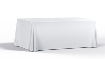 Item # PR3264 – Showcase your brand in style with this 6′ four-sided polyester table throw—perfect for trade shows, conventions, exhibitions, fairs, and events of all kinds. Made from durable, flame-resistant 7.5oz polyester, it’s machine washable, wrinkle-resistant, and available with full-coverage sublimation or front-panel printing. Also offered in 4′, 8′, and 3-sided styles to suit your display needs. Enough stock is always available. Get a free quote now!