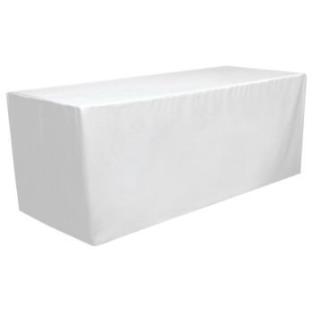 Item # PR 3224 – This economy table throw is crafted from 100% premium-quality polyester (7.5oz/sq. yard) for durability and a polished look. Designed to cover three sides of a standard 6-foot table (72″W x 28″H x 30″D), it features a rolled hem with rounded corners for a clean finish. The open-back design provides easy access to stored materials, making it ideal for busy event setups. Meets Flame Retardant NFPA 701 standards for added safety.