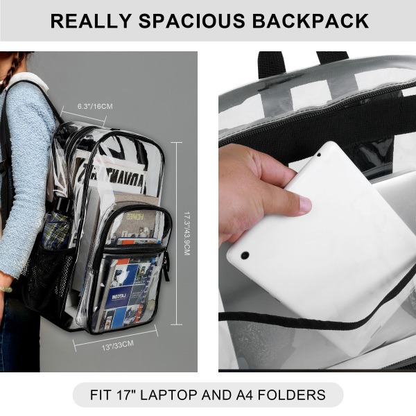 0.4mm 17.3″ Large Capacity High School Clear Backpack