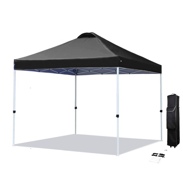 Item # PR 3241 – Built for durability and brand impact, this premium tent features a reinforced commercial-grade steel frame and a fully customizable canopy with full dye sublimation printing. The 600D polyester canopy is water-resistant, UV-protected, and fire-retardant for reliable use in any weather. A vented peak design promotes airflow to reduce wind stress, while the legs include automatic push-button adjustments for quick setup. Each tent comes complete with a stake kit and a convenient wheeled carry case for easy transport. Enough stock is always available. Get a free quote now!