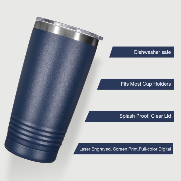 Item # PR3295 – This 20oz double-wall stainless steel tumbler (3.42″ x 3.42″ x 7.17″, 0.66 lbs) delivers long-lasting temperature retention to keep beverages hot or cold for hours and features a clear leak-free lid that can be removed for use as a coffee mug; available in white, navy blue, and black, it is BPA-free, CPSIA, FDA, and Prop 65 compliant, with front and back imprint areas of 1.77″ x 3.15″ each, customizable through laser engraving, screen print, or full-color digital, making it a stylish and practical premium marketing gift. Enough stock is always available. Get a free quote now!