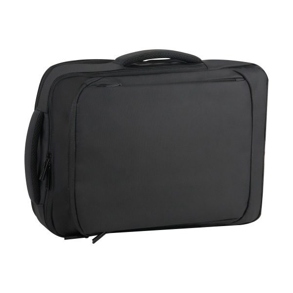 Item # PR 3507 – This versatile business backpack is crafted from water- and abrasion-resistant PU polyester and easily converts into a briefcase, messenger bag, or tote. The main compartment fits laptops up to 15.6″, while two vertical front zip pockets and a top zip keep essentials secure. A secondary compartment with an organizer panel offers additional space for daily necessities, making it the perfect bag for work, travel, or everyday use.