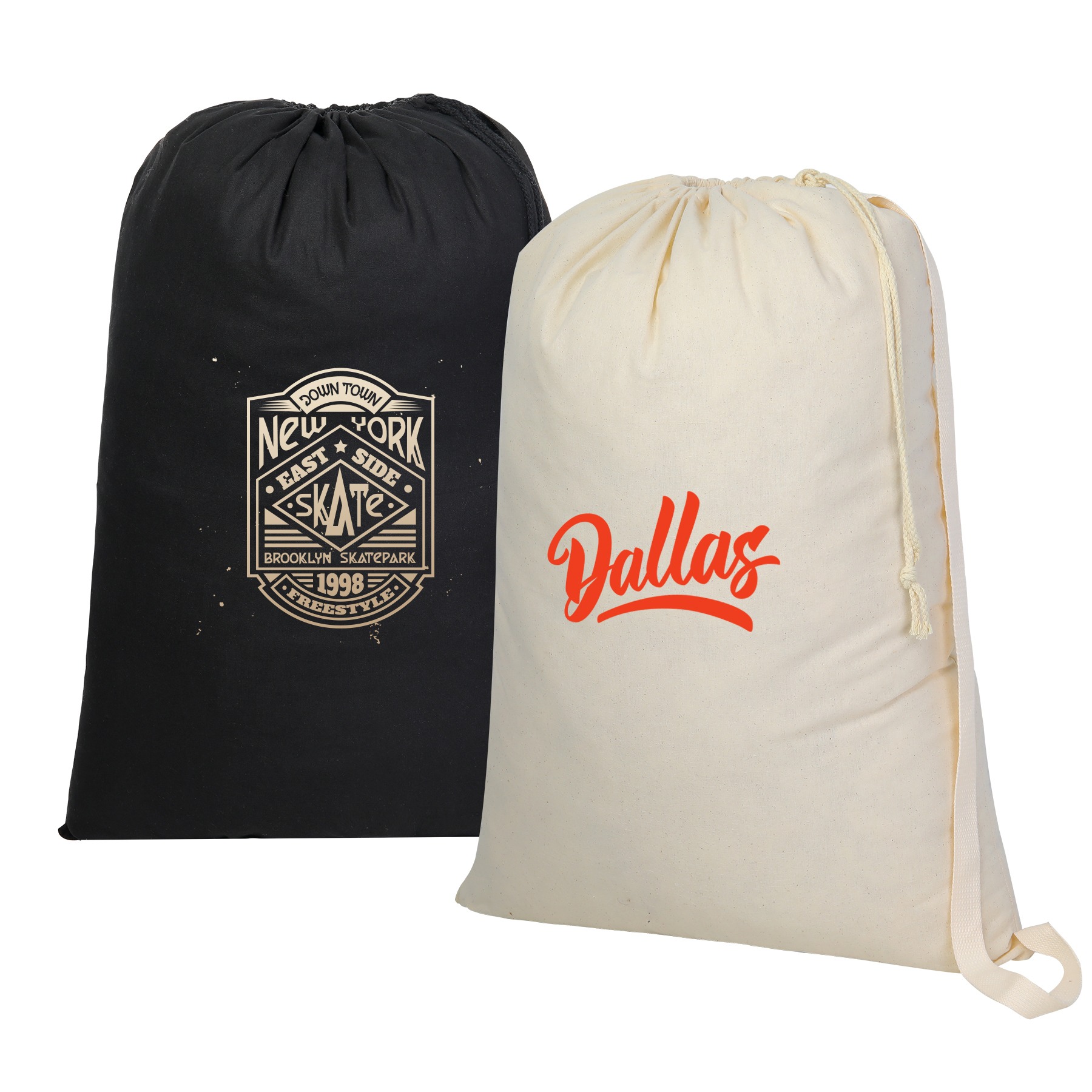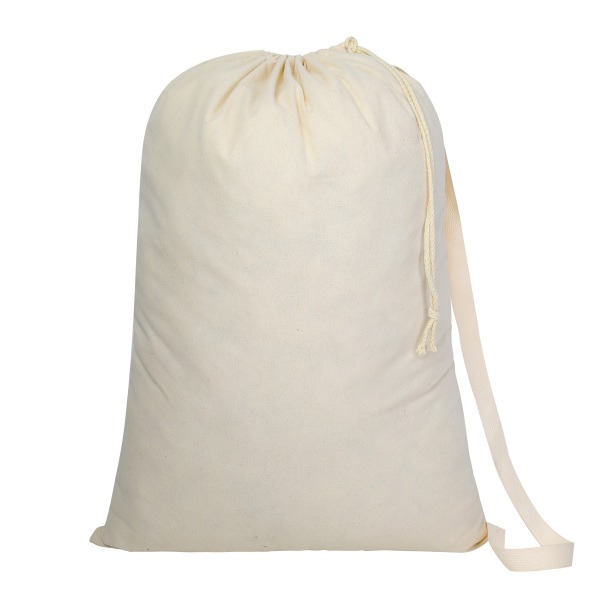 Item # PR 3446 – This 100% natural cotton laundry bag (28″ x 20″) is durable, eco-friendly, and spacious enough for clothes and bedding. It features a secure drawstring clasp and a shoulder strap for easy, hands-free carrying—perfect for dorms and campus living.