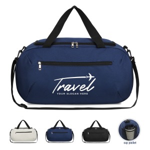 Item # PR 3480 – This durable 600D polyester duffel bag features a spacious main compartment for clothes, shoes, or books, plus a front zippered pocket for smaller items. Designed with a carrying handle and adjustable shoulder strap, it’s perfect as a travel, gym, weekend, or work bag. Add a custom logo to make it a stylish promotional item.