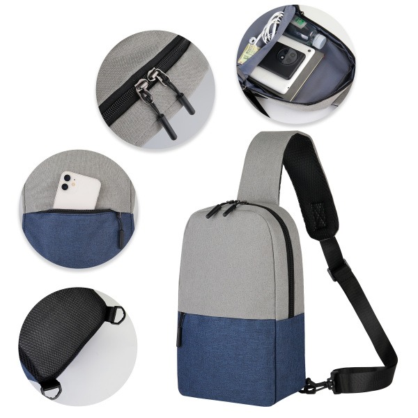 Item # PR 3490 – Crafted from durable 300D polyester in a stylish two-tone design, this sling backpack features main and front zippered pockets, a padded adjustable strap, and breathable mesh for comfort. Ideal for commuting, gym, hiking, or travel—customizable with your logo for year-round brand exposure.