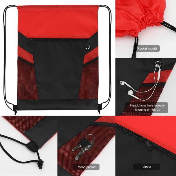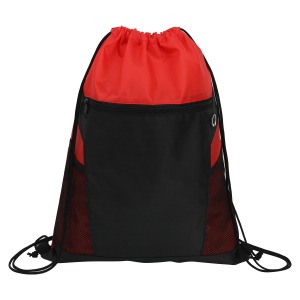 Zippered Drawstring Backpack With Mesh Pockets
