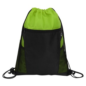 Item # PR 3460 – Made from durable 210D polyester, this lightweight drawstring backpack is perfect for school, the gym, or outdoor activities. The roomy main compartment holds clothing, books, or shoes, while the front zippered pocket keeps essentials like keys and phones within easy reach. Two mesh side pockets securely carry bottles or umbrellas, and an integrated earbud port allows for hands-free listening. With drawstring straps that double as shoulder straps, plus a sleek two-tone design available in multiple colors, this versatile bag is both stylish and practical—ideal for sports teams, events, promotions, or everyday use.